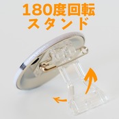 かわいいエゾモモンガの写真が載った缶バッジです。直径44mm。背面に180度回転のスタンドがついているので机に置いて飾れます。